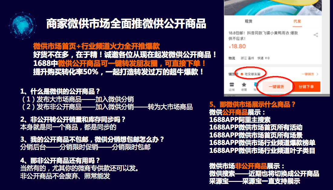 微供市场平台力推采源宝APP,采源宝升级为微供市场专属APP,私域商品榜单、商家营销工具陆续上线,助力商家更好地服务买家,助力买家更高效地找品。店铺每个周期都要准备2~3款微供爆款公开商品,真正做微供主打爆款。微供市场现行业商家榜单将升级至首页,原榜单位置将替换成推符合爆款标准的公开微供商品排行榜,以单品榜替代商家榜,用真正的好货去获取市场认可!如果还有哪些不懂,可以在商友圈查找“微供市场官方圈”。