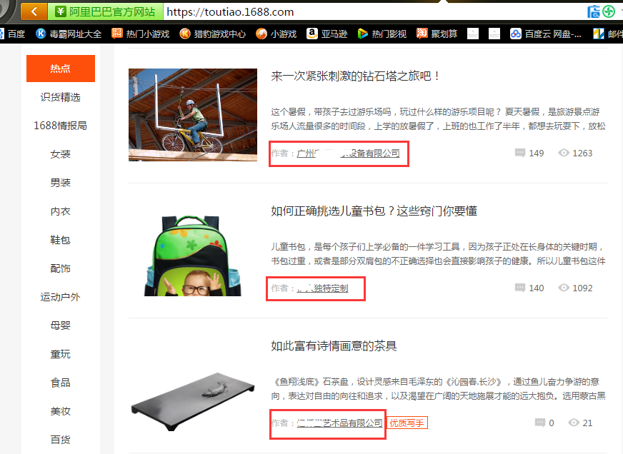 2)头条有哪些行业可以选择?里面有各行业、识货精选及1688情报局。这里有几个技巧: