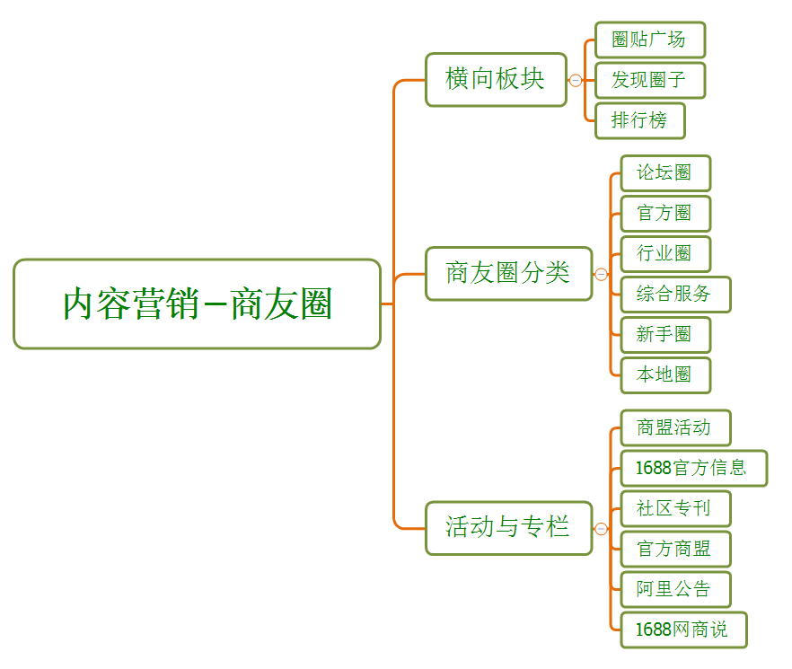 第十四种营销工具:商友圈。商友圈也是商友们非常活跃的地方,也是商人聚集的地方,还是学习和知识的聚集地。这里网罗了很多大咖,包括阿里巴巴中小企业商学院的一些专家讲师、做SEO相当好的一些网络大咖、爱学习的老板或者是公司企业主管们、一些“打酱油的酱油党”(这是很多菜鸟成长的沃土,很多菜鸟蜕变由此开始,作者最初也是从商友圈和社区里成长的)。具体路径和上述的阿里头条是一致的,有所不同的是上述选择我要投稿,下面选择的是发现圈子,或者创建圈子。我们把商友圈分为三类,具体的功能和选项都有点区别。如图9-35所示。