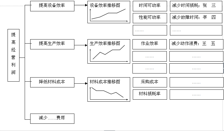 经营施工图方法的出发点是把企业的经营效率及期望获得的利润编制成一个结构清晰的系统图,这个系统图将每一个部门甚至每一个员工的工作或课题改善与企业的经营目标联系起来。
