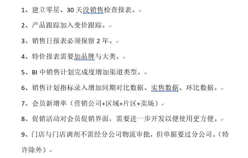 比如下面是该项目当时调研某分公司得到的需求,