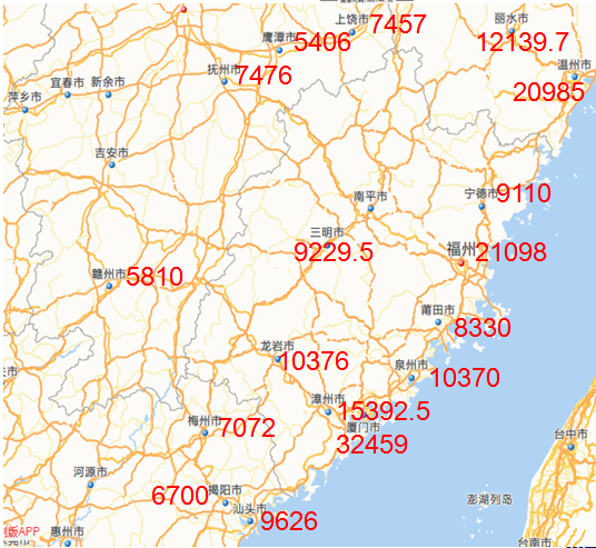 房价收入情况,在均值线下,居民收入较大且距离轴线向下偏离越大代表房价上涨潜力越强。重点关注城市有泉州、鹰潭;一般关注城市莆田、鹰潭、上饶、南平等城市。