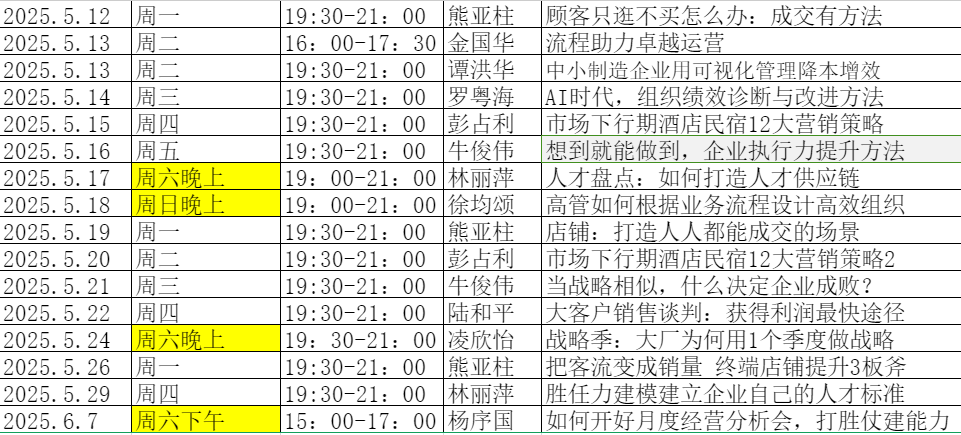 课程:技术规划与技术预研管理、基于IPD的新产品开发项目管理、在研发过程中构建新产品质量、IPD集成产品开发。