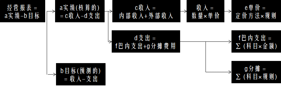 每个组织的经营成果直接取决于成本的控制,促使每个组织和员工都要会“算账”,而且为了降低成本,账算得越算越细,核算项目内容,尤其是“费用”的规定逐层细化,比如将“水电费”细化成了“水费”和“电费”。在员工看来,这样做出的核算结果就像一位细心的家庭主妇的家务账,一家人每天花的每一分钱都能找到去处,既详细又易懂。