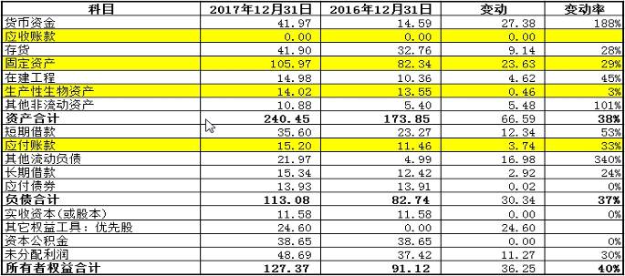 三是14.02亿元的生产性生物资产,有高达41.90亿元的存货,因此可以猜测这是一家农林牧渔企业。