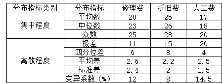 分布分析可以结合比较、趋势等分析,例如对于选择的众多成本对象,可以计算各类成本项目的各类分布指标,如表7-1所示。
