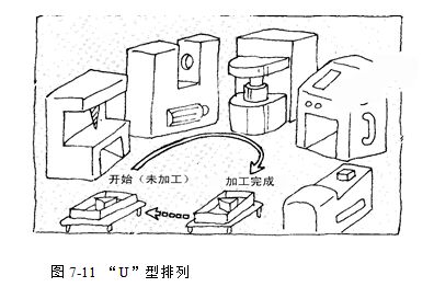 从作业人员的角度来考虑的话,由于实行一人多机、多工序操作,布置设备时还应该考虑到使作业人员的步行时间合理。此外,还应注意场地利用的合理性。