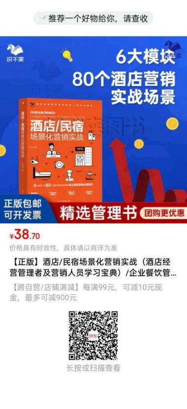 彭老师在实干家视频号平台为购书读者准备了超值线下课程福利!只要您在视频号平台购买《酒店民宿场景化营销实战》这本书,凭借购书截图,即可享受众多线下课程对折优惠,轻松节省大几百块!​
