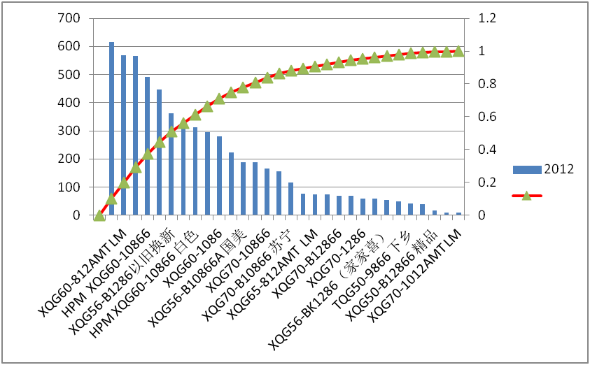 在实际应用中,一个完整的产品数量分析需要绘制多个图形。因为在销售收入,产品产量和零部件产量中,主要数量的产品(如A类)不一定是完全一样的。