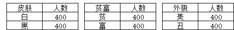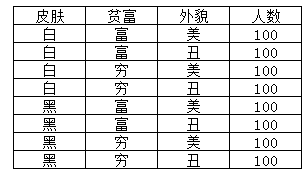 我们再示例多维和多维组合的区别。例如,皮肤、贫富、外貌三个维度的数据,如表2-1所示。