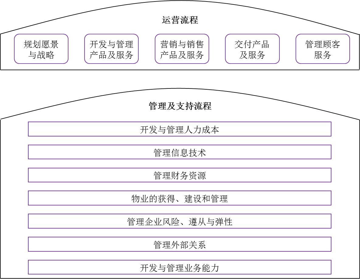 是企业流程中的最高一个级别,例如管理客户服务、管理供应链、管理财务资源、管理人力资源等。