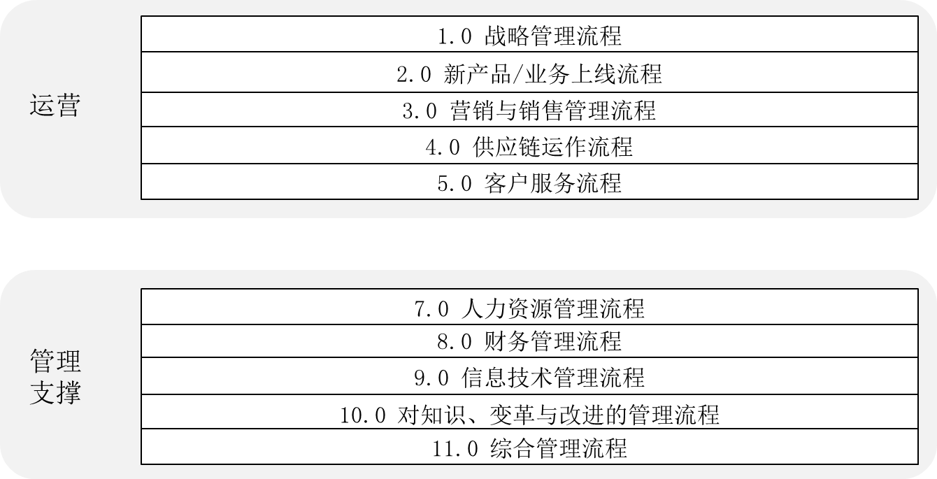APQC 2012年发布的V 6.0.0 跨行业通用版流程总架构如图2-6所示。