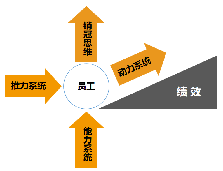 企业和员工只有在长远利益方面是相同的!因此,越能让员工关注长远越能让员工和企业一条心。动力系统就是要让员工基于长远利益的考虑,愿意顶着压力努力执行销冠思维标准。如图8-1所示。