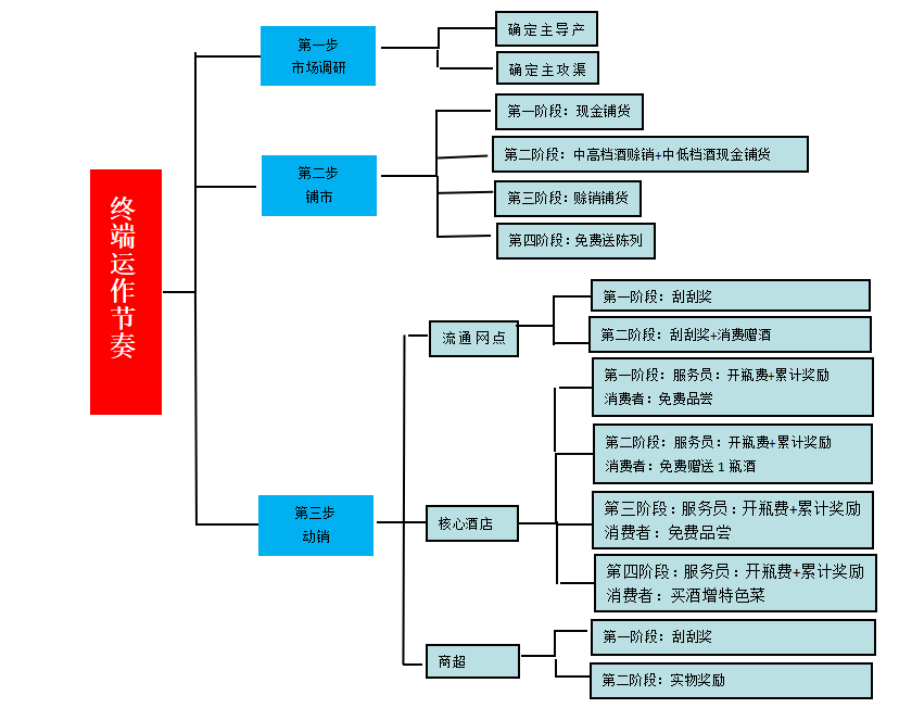(2)厂家业务人员的主要工作就是围绕上图,协助和配合经销商,组织和培训相关业务人员,在铺货、陈列、氛围营造、促销活动设计、客情维护等方面实现标准化的运作。