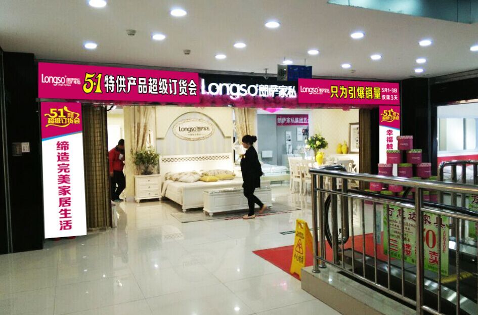 图6-10专卖店布场-店内吊旗(以朗萨家私专卖店为例)