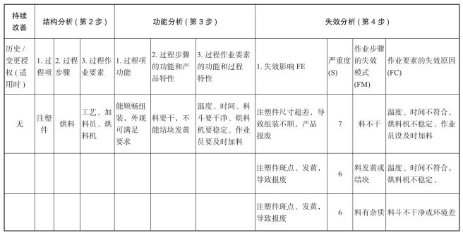表2-5 PFMEA表失效分析