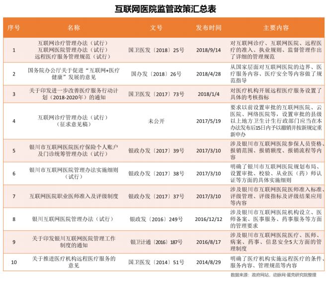 表1-1 互联网医院监管政策汇总表
