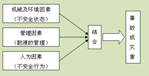 在所有的生产系统中,都或多或少地隐藏着引发事故、灾害的因素,而事故、灾害往往都是一些不起眼的问题积累的产物。图4-2是灾害或事故发生的机理示意图,理解它可以帮助我们更好地开展事故、灾害扑灭活动。