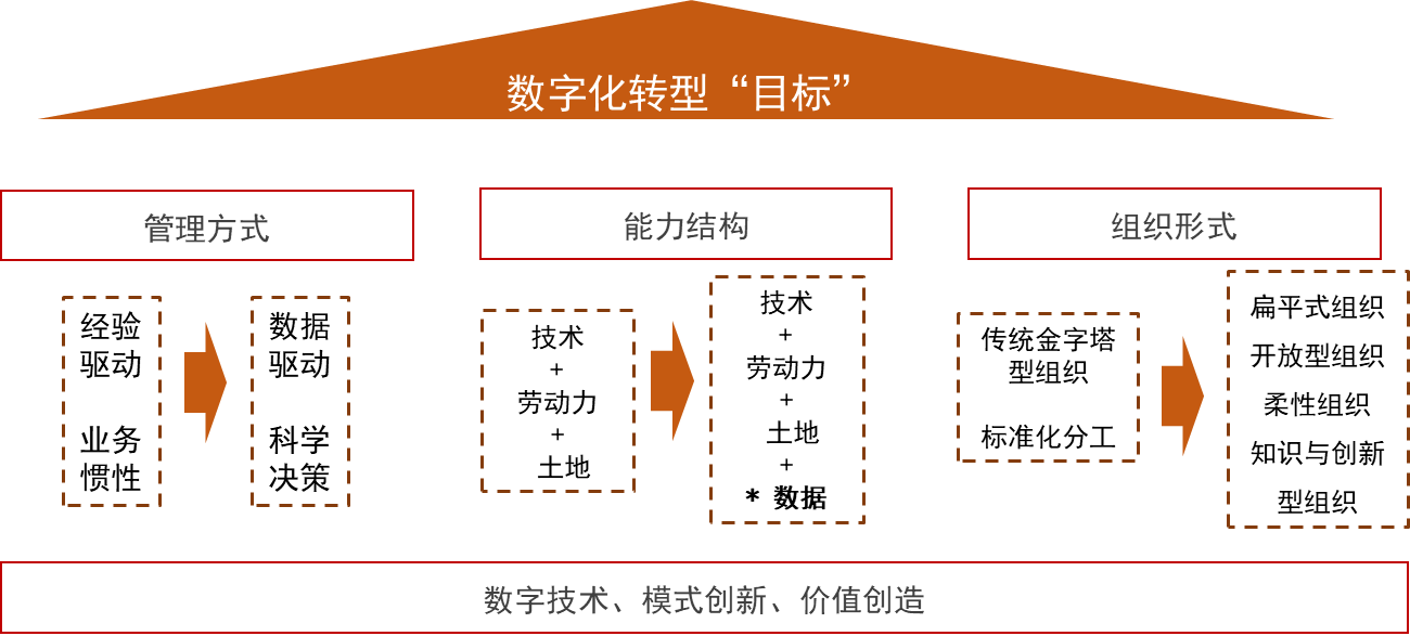这里面,第一点是工具,第二点是方法,第三点是达到的效果。数字化转型所转的内容,答案其实就在第二点——模式创新,即数字化技术给企业经营活动带来的变化。