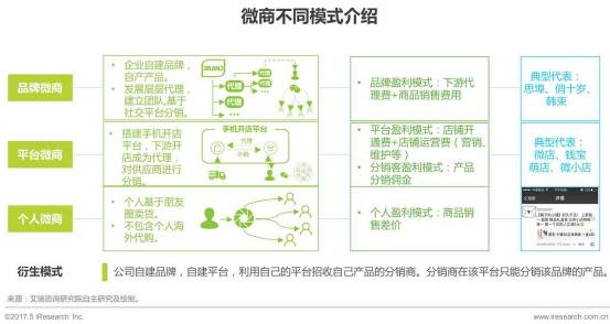 微商平台模式。大型传统企业进入微商领域,接入微商平台来服务他们。