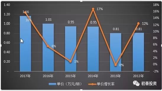 (2)笔者从量价的角度分析公司收入增长的驱动因素,销量从2012年的8.78万吨增长至2017年的13.05万吨,年复合增长率为7%。近三年成加速增长态势。如图2-19所示。