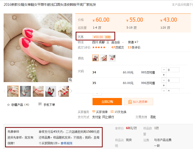 一分钱拿样、免费拿样、火拼、快订等活动,能引来许多免费的流量和客户。阿里巴巴这些免费的活动我们一定要重视起来,因为只要报名成功,就能给我们带来一定的浏览量、曝光量和成交额,这些我们一定要充分利用好。