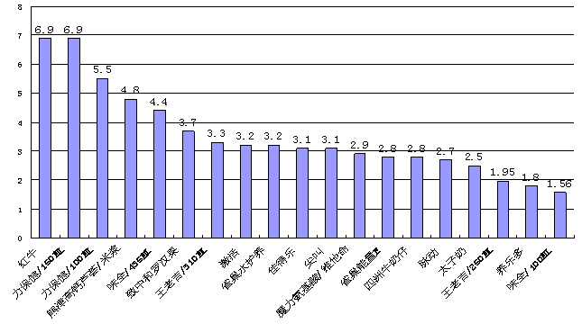 从功能饮料及其相关替代饮料的零售价格(图3-6)可以看到,4~6元是功能饮料的价格区间,已经得到市场的接受。超过6元,尤其是到8元及以上的功能饮料必然造成消费者接受障碍。零售价6.9元的增强型红牛,也会面临销量陪衬的境地。
