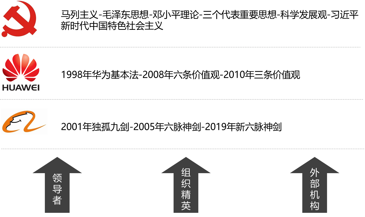 2019年阿里巴巴升级价值观时,举行了5轮合伙人专题会议,累计467名组织部成员参与,同时对全球各事业群不同司龄、岗位、层级、年龄的员工进行调研,得到建议反馈近2000条。