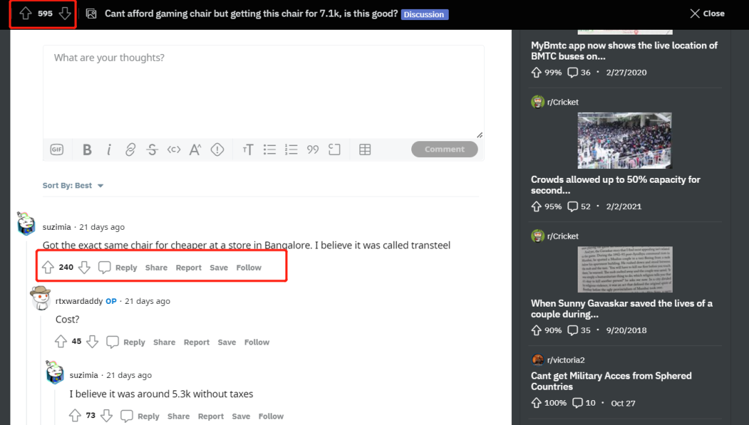 与所有在线社群类似,在Reddit进行营销的第一步是“养号”。Reddit 用户几乎不会信任只发布促销内容的账号,因此在开始任何“推销”动作之前,我们需要在对应的社区“混脸熟”,开启长时间的养号(可能需要2周到3个月的时间)。在养号的过程中可以积极回复别人的帖子,或者对帖子点赞或点踩来表明自己的态度(入口如下图所示),又或者是先发布一些不带有品牌营销倾向的内容,发帖和回帖至少总计20个以上。