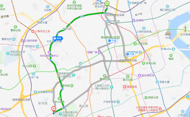 价值流程图:上海市全局地图 全局视野 | 流程图:上海火车站-交通大学路径 通道捷径 |