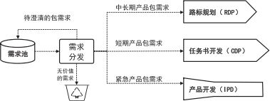 ● 对于重要但是不紧急的长期需求,可以分发给路标管理团队,将需求纳入路标,进行需求排期。当组合管理团队(PMT)创建路标规划时,需要从需求池中提取需求。