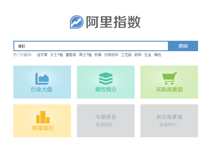 第一步:打开阿里指数的网址,然后输入关键词:耳钉(图1-3)