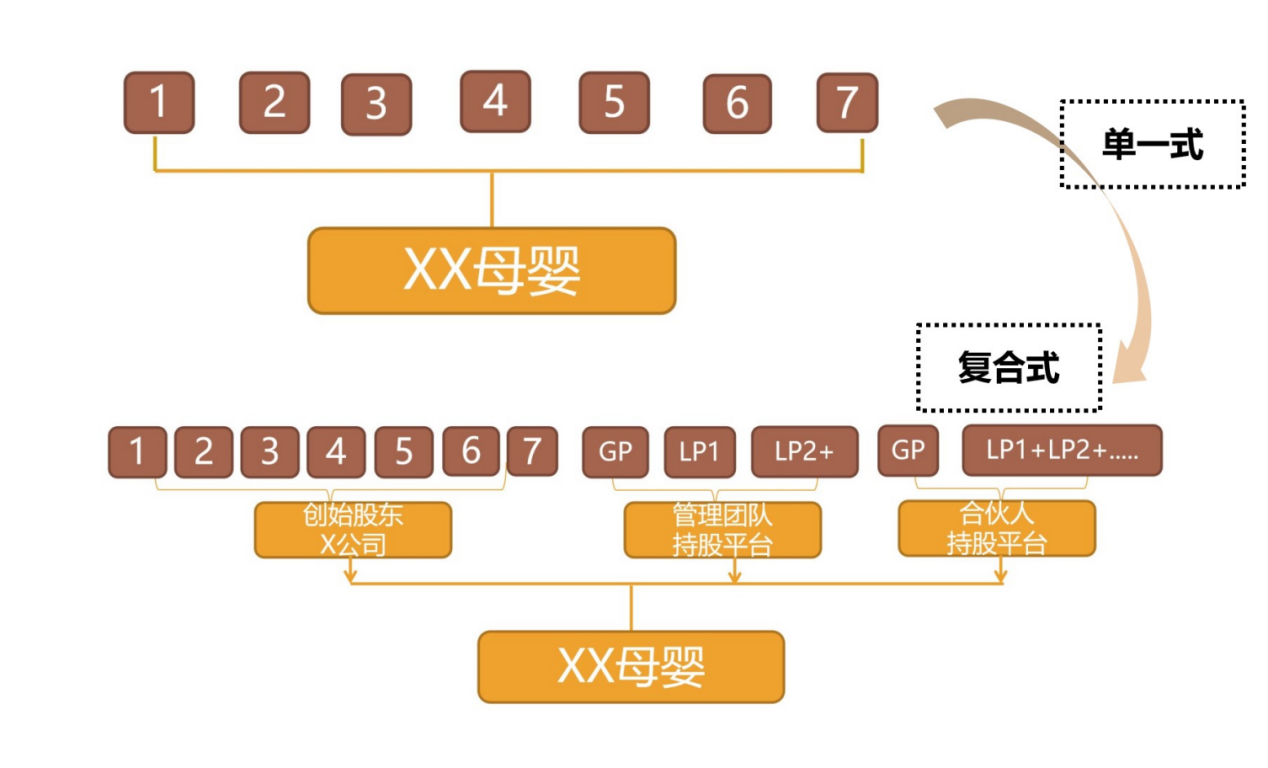 图8-2 股权架构的变化由单一式股权架构转向复合式股权架构
