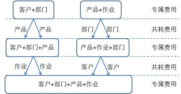 通过多口径的专属费用与共耗费用,可以看到,如果成本对象就是"客户+部门+产品+作业",那么,通过多口径归集就可以完成整个成本计算过程。也就是说,如果多口径归集的口径与成本对象恰好一致,则不再需要多路径分摊,如图4-17所示。