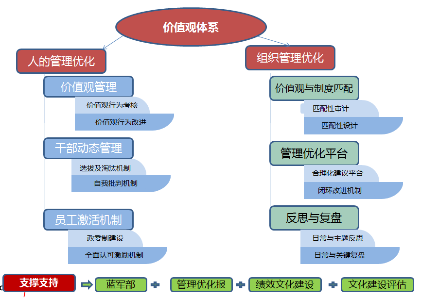 华夏基石研发的基于价值观的管理优化系统方案是以管理为抓手的企业文化落地系统方案。其主要核心思想是以管理为主线,以激活为手段,以优化为目的,通过人的激活和组织优化两条途径全面提升企业的组织效能,同时打造出一支高绩效团队。