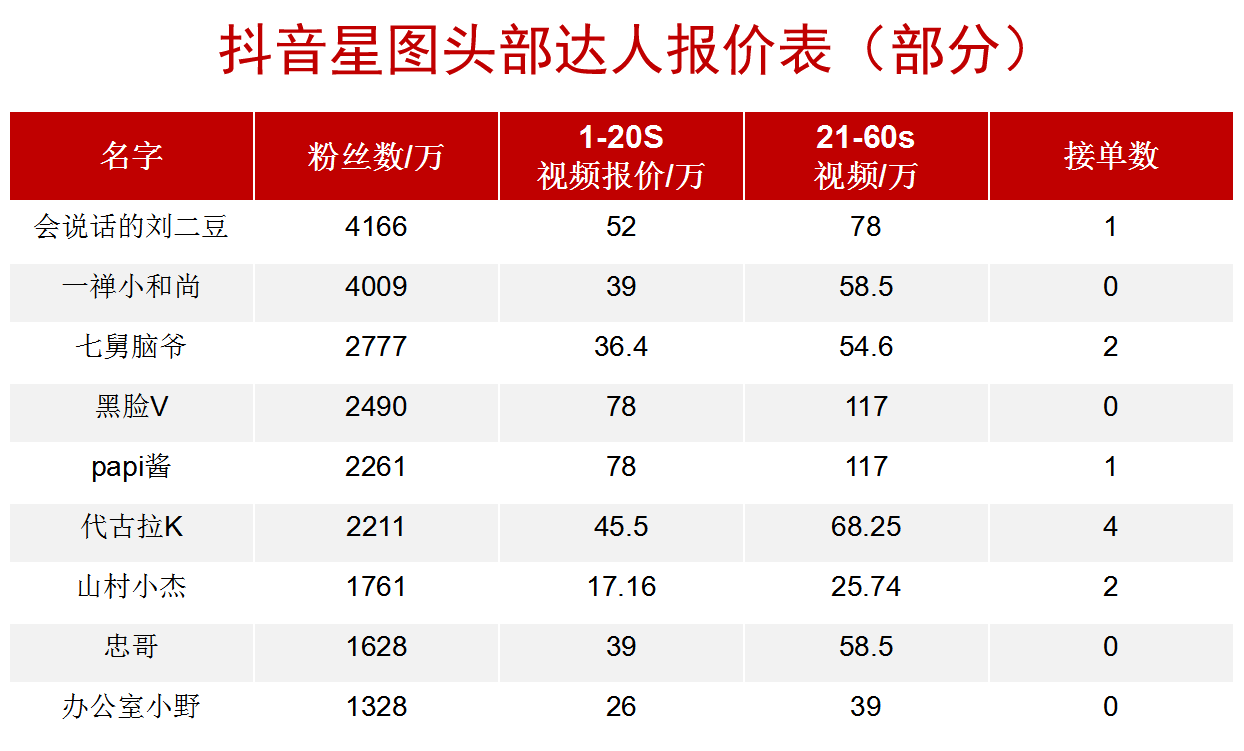 “一禅小和尚”是报价单里唯一一个虚拟网红,其背后MCN是大禹科技,旗下还有一个全网粉丝千万的大号奔波儿灞与灞波儿奔。除了短视频,这家公司还做游戏自研,从粉丝量和营收角度目前稳居国内MCN的第一梯队。