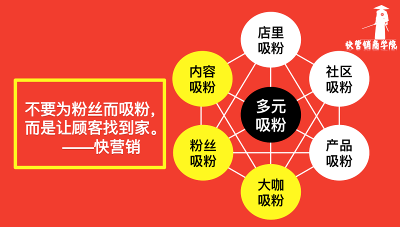 在吸粉的过程中,不要为粉丝而吸粉,而是让顾客找到家。我们吸引的是顾客而不是假粉丝,现在有很多加粉的软件,加的全是僵尸粉,没有任何价值。我们通过多元化的方式吸引粉丝,吸来的粉丝一定是精准的,是想购买的,我们叫潜在的顾客。