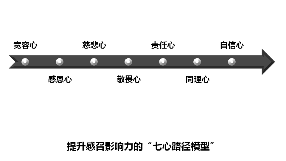 那么,对于一名培训师来说,到底可以从哪些路径来持续改善自己的感召影响力呢?笔者经由实践体认,建构了一个有效改善和提高感召影响力的“七心路径模型”(如图2-2)。
