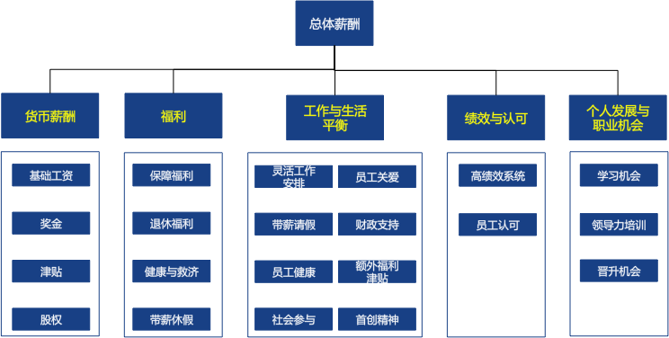 而员工的需求,又是生理因素、物质因素、社会因素等一些因素构成的系统集合。所以,针对关键人才,企业要设计集货币、福利、认可等为一体的,包含经济性和非经济性诱因的全面薪酬体系,如图3-3所示。