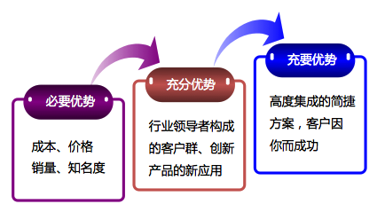 2、充分优势,比如行业前三名大客户的批量应用,这才是领先品牌的优势根源,一切的技术、品牌与产品优势,若不能在行业领导者身上形成销量,再多的优势始终都会说说而已。充分优势,少数人拥有,多数人羡慕,对于国内企业而言,单纯地技术研发上破壁,可能性少之又少。