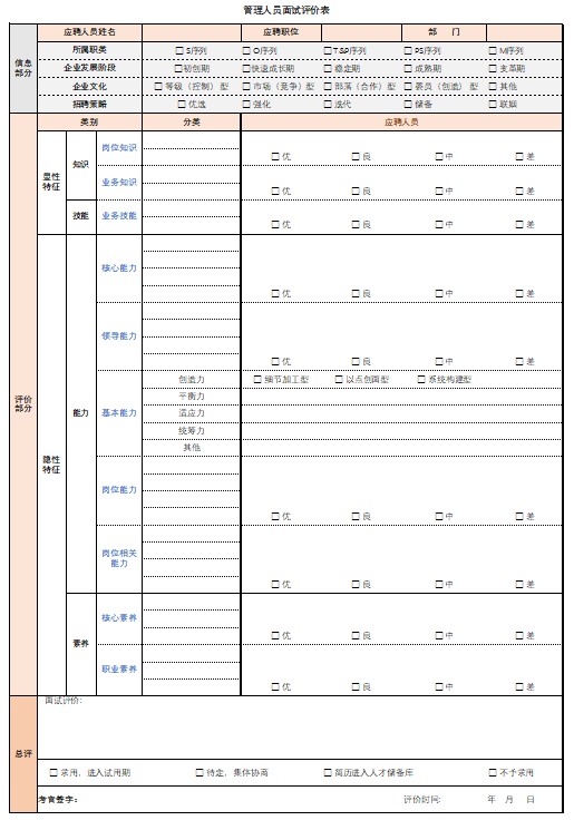 附:《管理人员面试评价表》