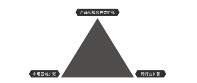 战略调整冗余度究竟意味着什么呢?从扩张战略铁三角一图中,我们知道扩张战略主要有三大类(如图4-3所示):