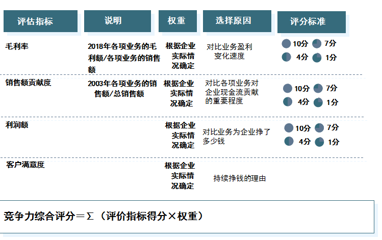 图:确定各业务的企业竞争力评价指标的权重和评分标准