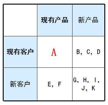 A:现有产品面向现有顾客。在公司的剃须刀片业务上,吉列有从一次性剃须刀到“感应(SENSOR)”牌剃须刀等多种类的整套产品。它注重经销、广告和促销活动,使它从核心顾客和核心产品中得到了持续增长。