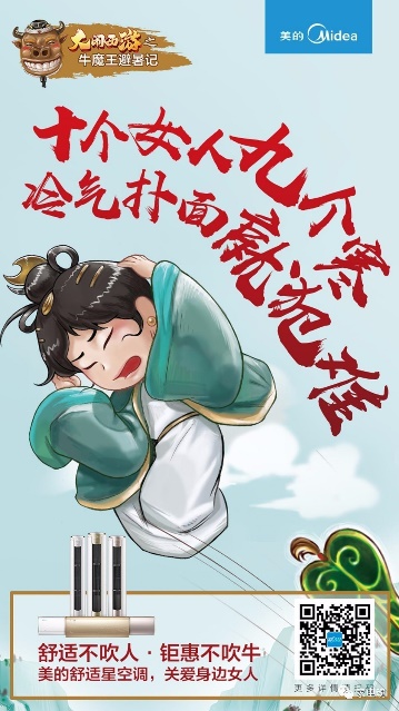 如美的空调融合和导入了很多经典IP内容,进行娱乐营销传播,提升了品牌建设和终端促销的流量聚集能力。不仅仅是终端促销,美的空调还将传统名著融入主推产品,在全国范围内进行声势浩大的巡展活动。孙悟空、牛魔王、红孩儿、铁扇公主、晴雯、王熙凤……这些在传统名著里耳熟能详的经典角色大面积地出现在了美的空调的各个终端上,相比于以往的终端品牌推广形式,以传统名著的经典角色为切入点,使得美的空调的各种活动更有趣味性和故事性,更能吸引新生代消费者。