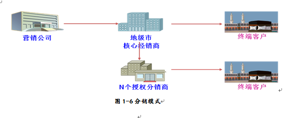 建立地级市核心经销商服务多个授权分销商的渠道布局,营销公司设立办事处为核心经销商提供销售支持与服务工作。如图1-6所示。