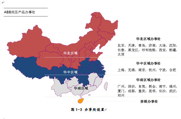 ABB低压电器共设置4个办事处,如图1-3所示。办事处主要职能: