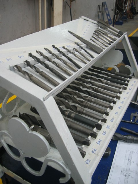 图3-1所显示的现场是管理无效的现场,抓‘干净卫生、摆放整齐’无法取得实质性效果,不同的人或者不同的时间都可能给现场带来不同的‘变化’,而这种‘变化’是没有‘对’与‘错’的,往往不同的考核人员前来进行考核时,面对不同的‘变化’,都给予‘合格’的判定。相反,图3-2的现场却是管理有效的现场,因为谁都知道‘对’与‘错’,此处最多摆四个桶,并且‘一个萝卜一个坑’,如果摆偏了,谁都知道。无论谁来考核,都知道如何判定好坏。图3-3 所显示的工具钻头的现场管理也是无效的,因为无法判断架上物品是多了还是少了?没有‘对’与‘错’。而图3-4 所显示的工具架是有效管理,物品是‘多’与是‘少’一目了然。当然,仅仅‘谁都知道对与错’的规范化管理还不够,可以进一步改进提高。比如追求快速、准确、安全、节省空间、节省能源、节省各种消耗等方式。在3A公司指导的大量TPM设备保全、精益生产、全面改善或单纯的6S咨询项目中,我们发现企业营造不断改进的文化对维持与提升现场管理水平十分重要,对企业最终实现管理精细化、生产精益化十分重要。