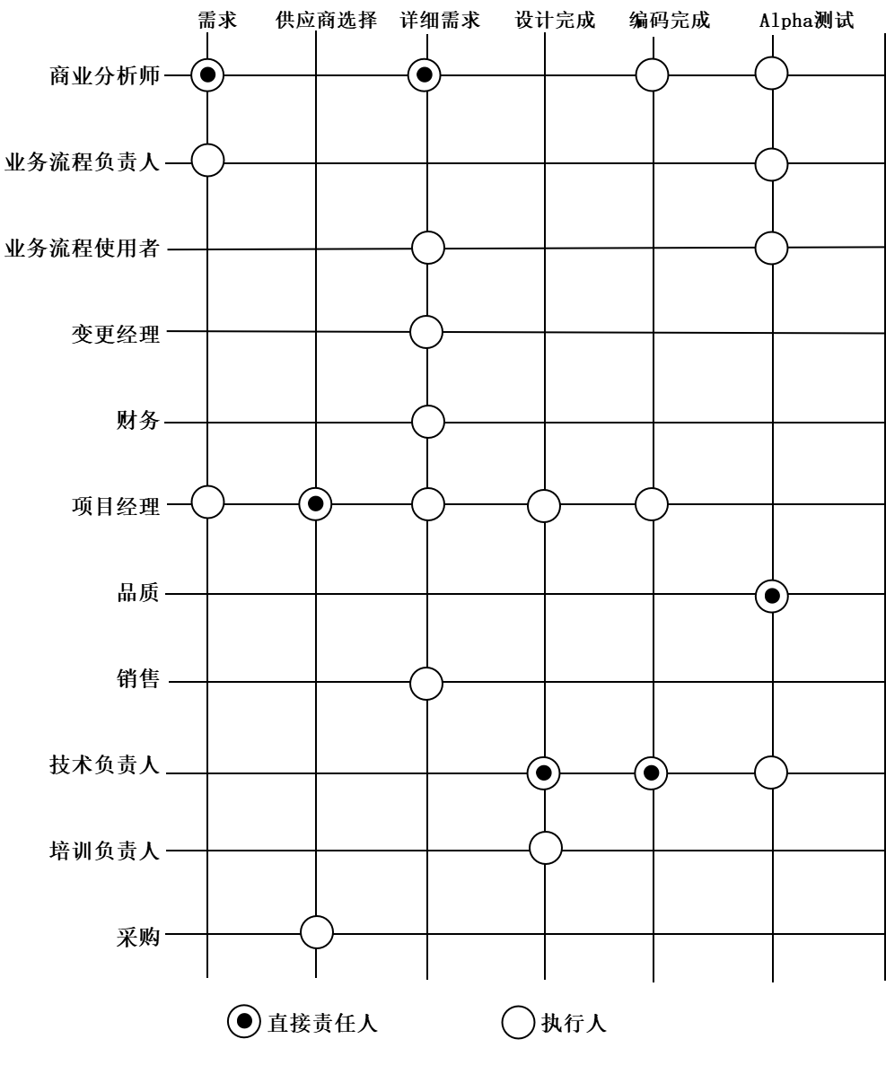 ​ 在纵轴上标识关键角色(或关键个人),包括项目经理;