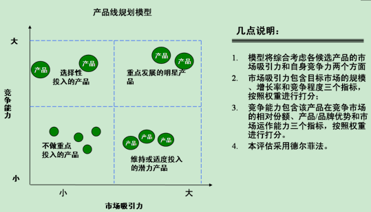未来产品线规划主要是感觉现有产品线不能满足未来企业的发展,而重新引进或者研发产品。未来产品线规划包括:自身研发;对看好的某个企业、某种产品,利用自身资金等优势直接兼并、收购;更新换代;在原有产品良好销路的基础上再创新、更新剂型、包装、适用范围等。